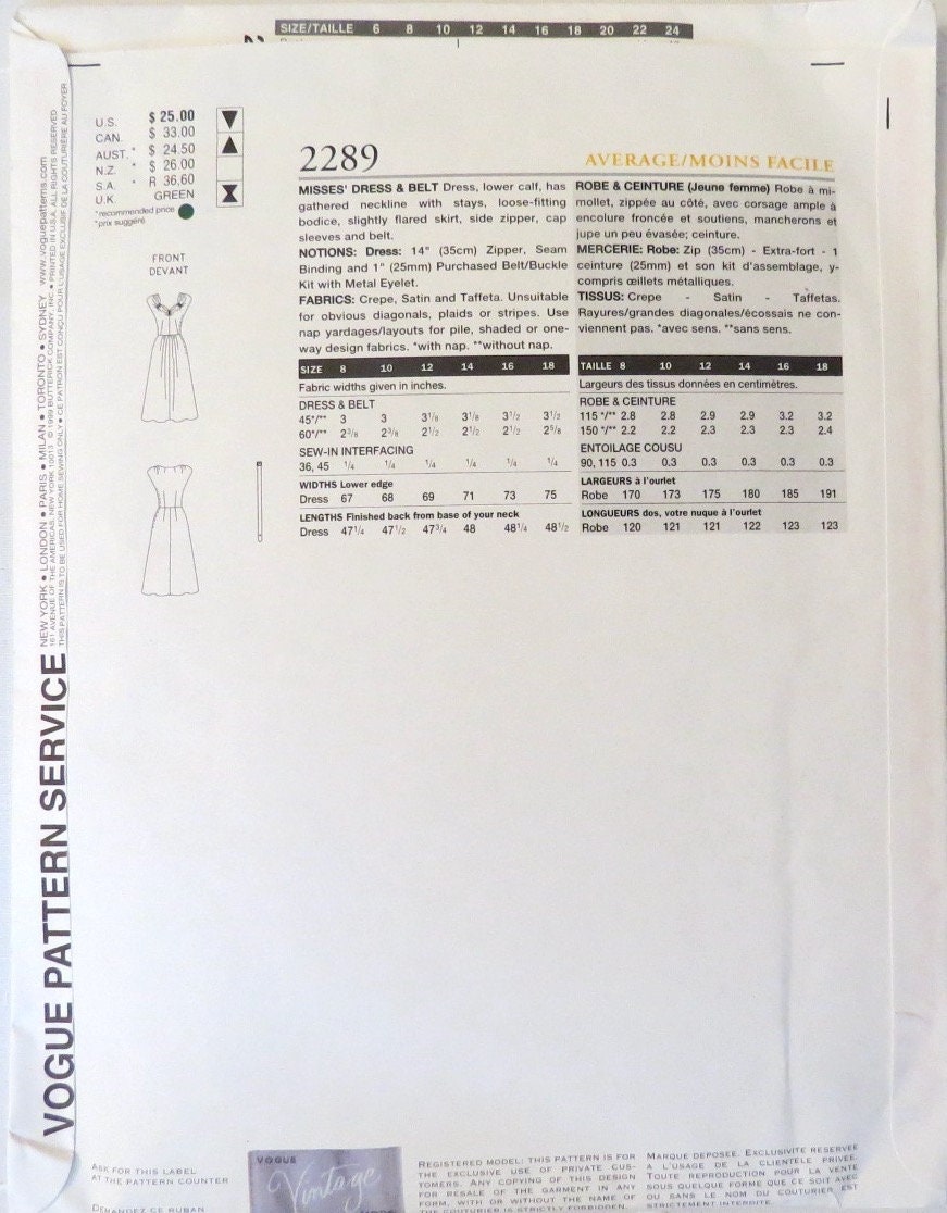 Reproduction Vogue Original Design 1949 Pattern 2289 Size 18 Etsy